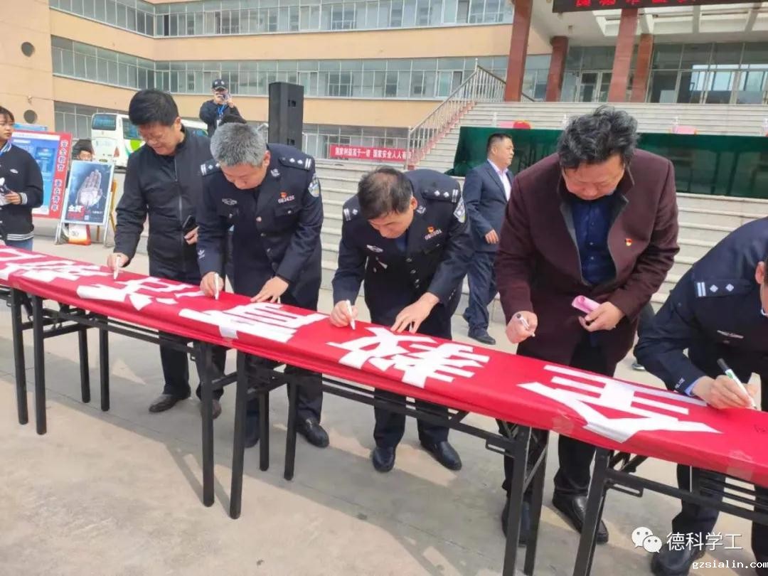 最后,与会领导、全体师生员工,一起在第六个“全民国家安全教育日”主题条幅上签名,并一同观看了“反邪教宣传教育进校园”宣传展板。