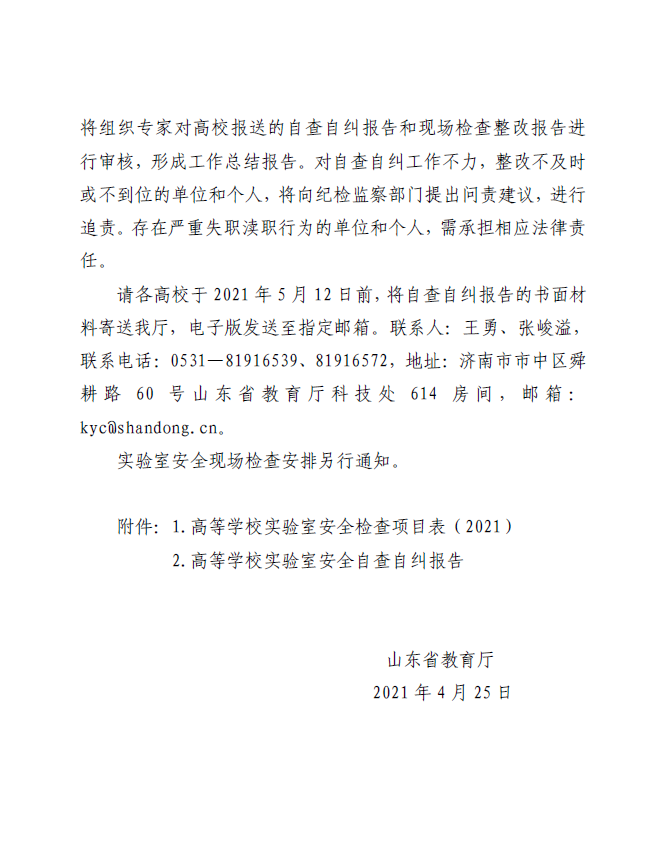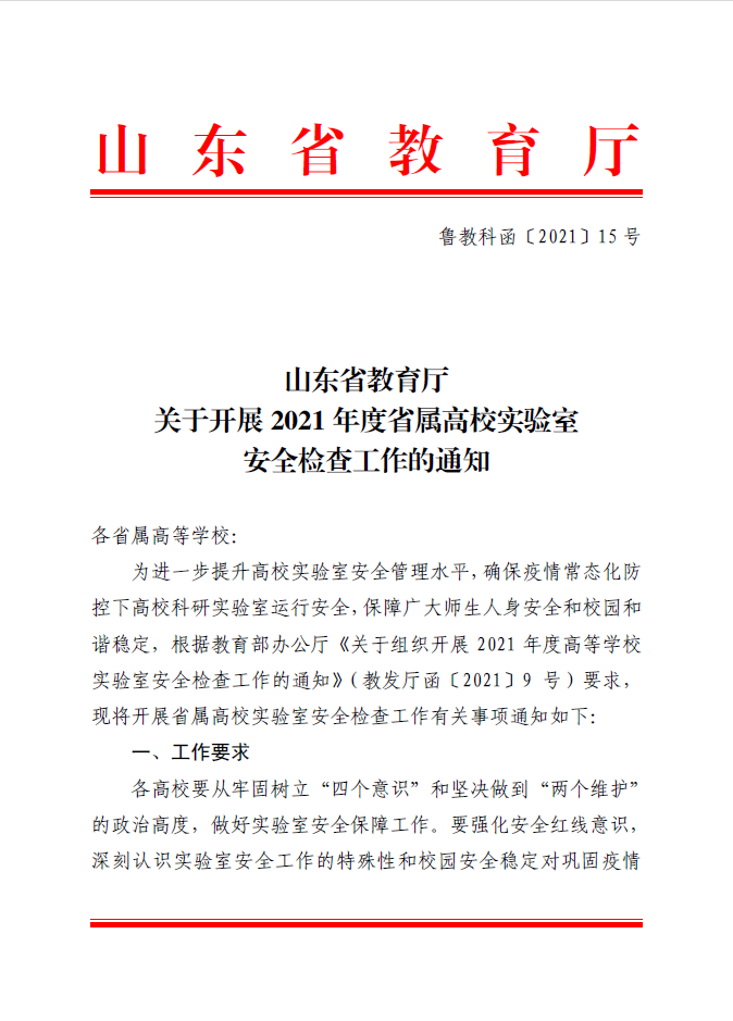 山东省教育厅关于开展2021年度省属高校实验室安全检查工作的通知