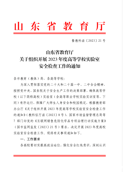 山东省教育厅关于组织开展 2023年度高等学校实验室安全检查工作的通知